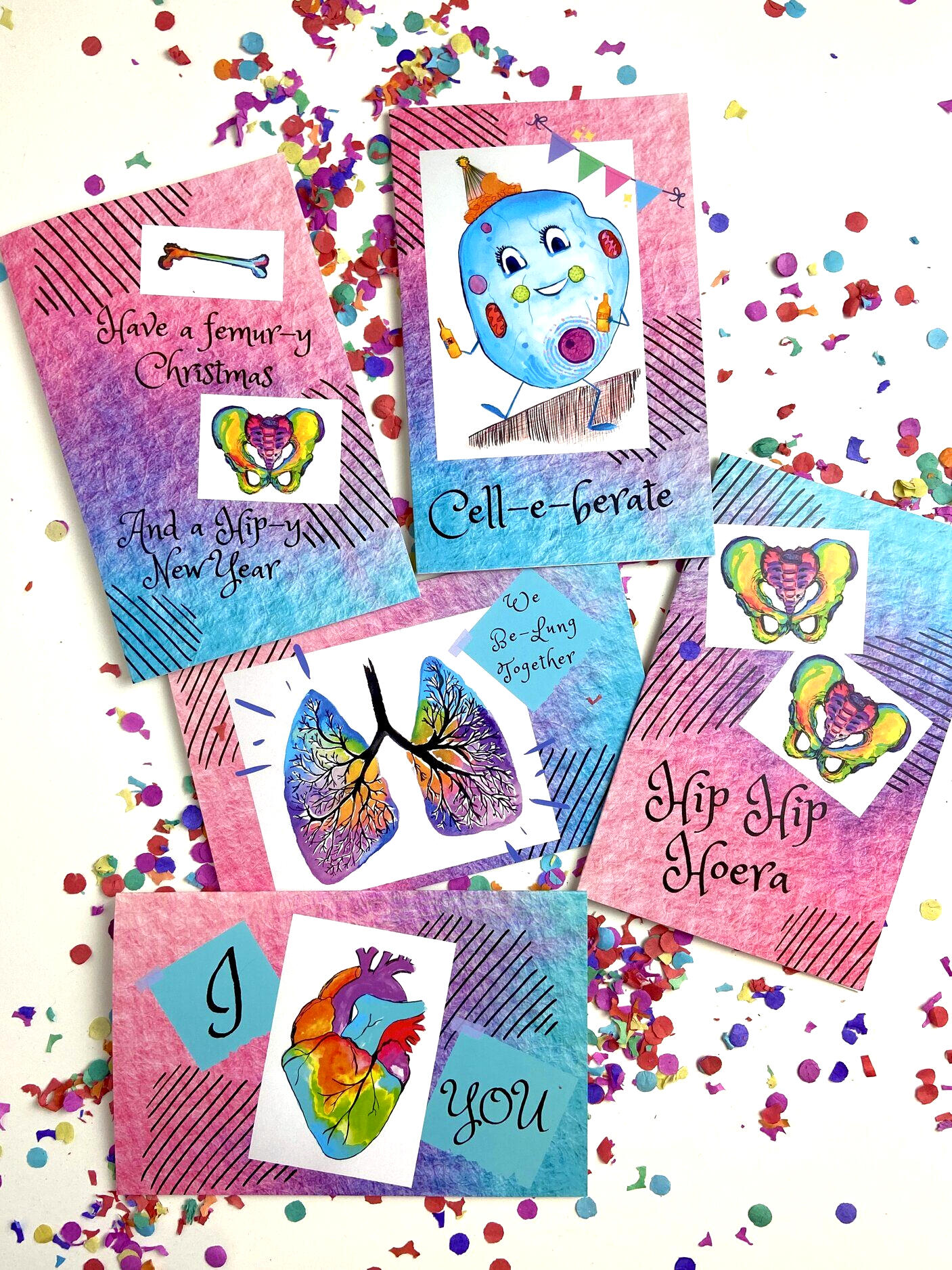 Get a set of 5 beautifully funny medical greeting cards made by Anum for 20 euros, and support the AMAYA initiative!